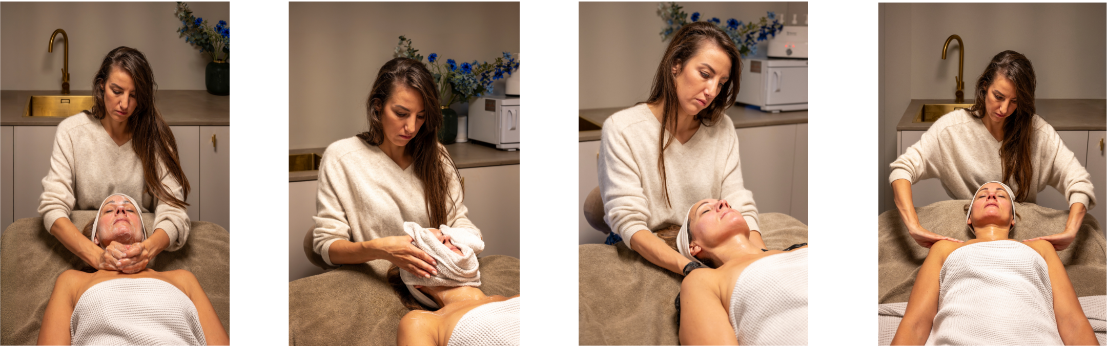 Deze verzorging is niet enkel afgestemd op uw levensstijl en huidproblematieken maar ook op uw DNA. Een huid verbeterende gelaatsverzorging met diepe bindweefsel met de guasha-techniek en collageen masker.